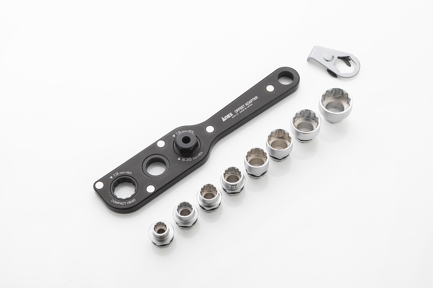 El Juego adaptador portavasos excéntrico con vasos es la herramienta adecuada para trabajar en lugares y situaciones de difícil acceso. Gracias a su mecanismo y materiales de alta calidad, podemos llegar a pares de apriete de hasta 180N/m. Dentro del juego podemos encontrar 8 vasos con los que podremos manipular gran cantidad de tuercas de cabeza hexagonal.